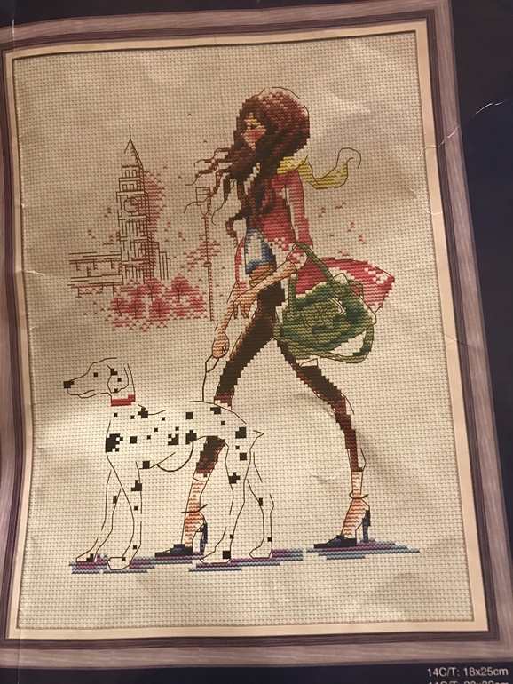 Всем привет! Увидела я вышитую работу у одной девушки, ну и загорелось мне найти этот набор. Купила. И вот за недельку его осилила. Конечно в картинке есть свои нюансы. Ноги у девушки интересно выгнуты, но самое интересное, что наша мадам мелкая тоже так выгибает их,Поэтому менять ни чего не стала. Но собаке пришлось потолще и по ровнее ногу заднюю сделать,и хвост длиннее )😂