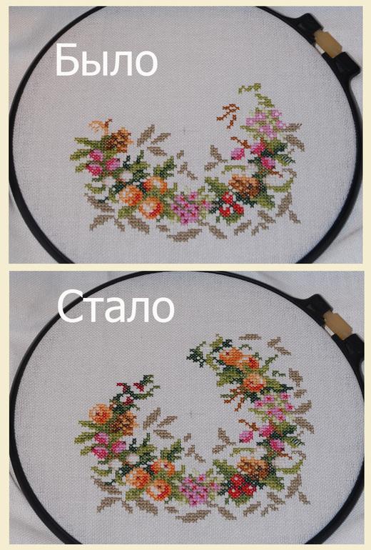 Спасибо))) только что было - это результат 2х дней, а что стало-это я всю неделю ковыряла и распарывала...Схема жесть! Под конец сегодня в районе зелени немного ошиблась, психанула и вышила экспромтом