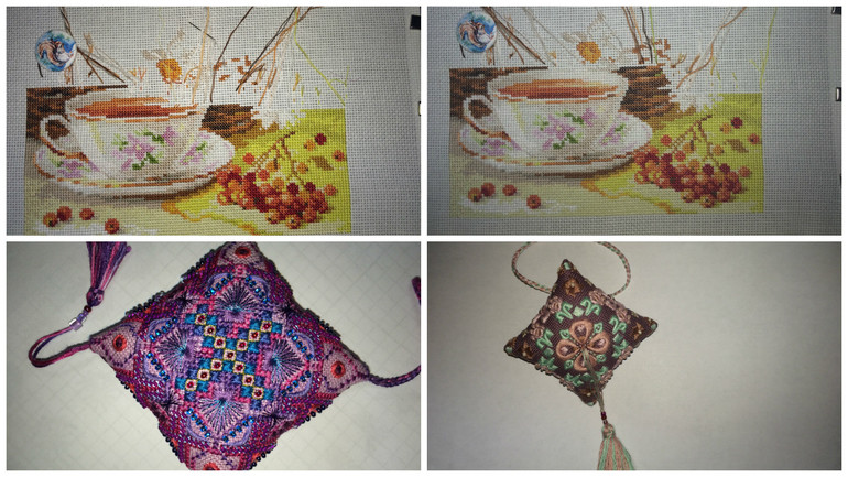 Всем привет. Запрыгиваю в последний вагон... За неделю закончила 2 небольших процесса (авантюрки) и немного повышивала Полуденный чай.