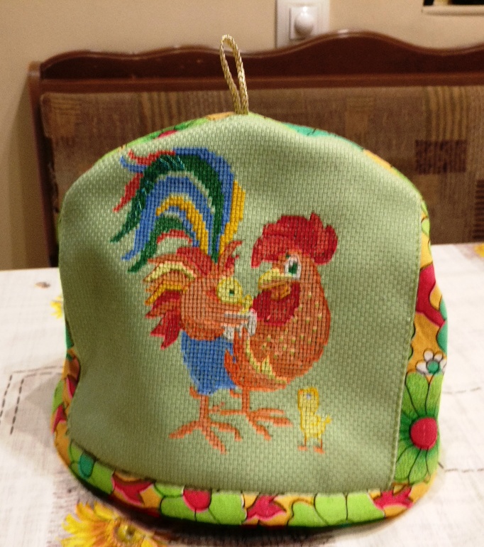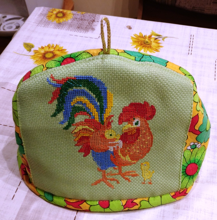 Ну в заключении птичий темы, покажу петуха, которого вышивала в теме символ года, оформила его как "баба" на заварной чайник.