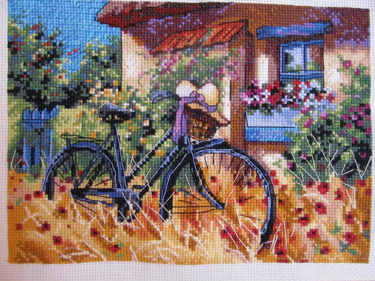 Вышивка крестомВсем привет. Закончила я свой Велосипедный день. Немного тяжело он у меня продвигался, много одиночных крестов было но я его вышила и очень довольна результатом. Пока оформлять не планирую но обязательно это делаю