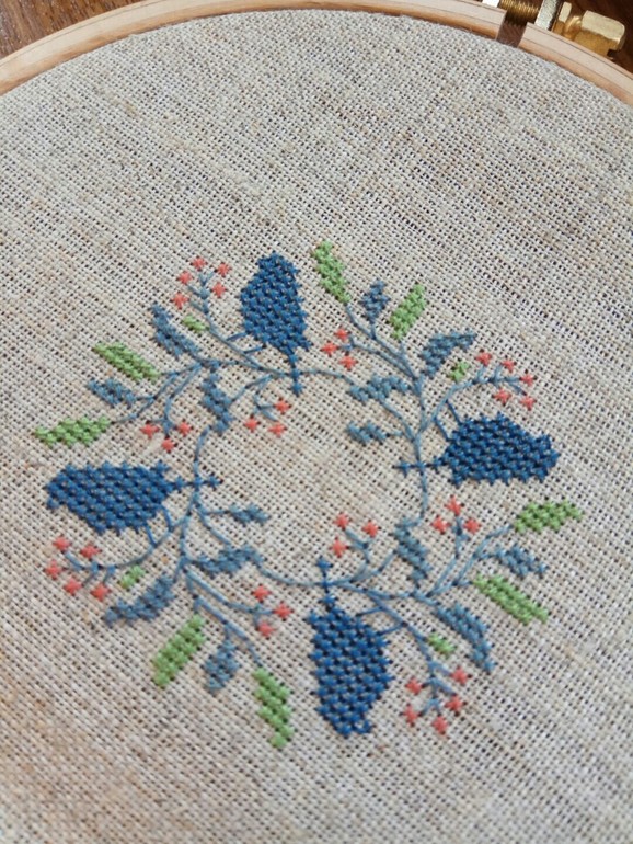 Девчоночки, всем привет! Так хочется уединения на пару тройку часов с крестиками и тишины)) а так как пока это только в мечтах вышился у меня вот такой милипусенький веночек, даже не знаю, куда я его потом) но, вот захотелось:) вообще вышивать на льне, это какой-то наркотик и кайф как оказалось для меня)), поэтому параллельный процесс на аиде все время откладывался(