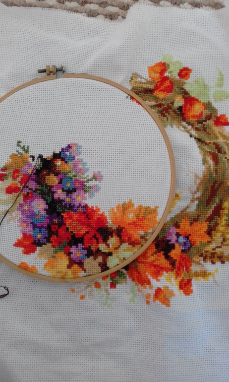 Я тоже ниточный маньяк, поэтому понимаю до трясуна в лапах, какой кайф ловишь)) Но я еще параллельно и анкор подгребаю, и JP coats))) Но до полной палитры в всех еще не сильно близко. А про бэк - есть работы, которые вообще при искусственном свете никак.. Но венок классный)