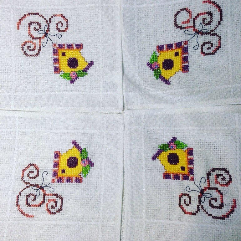 и мое стало. Получается на углах салфеточки появились 4 милых домика)