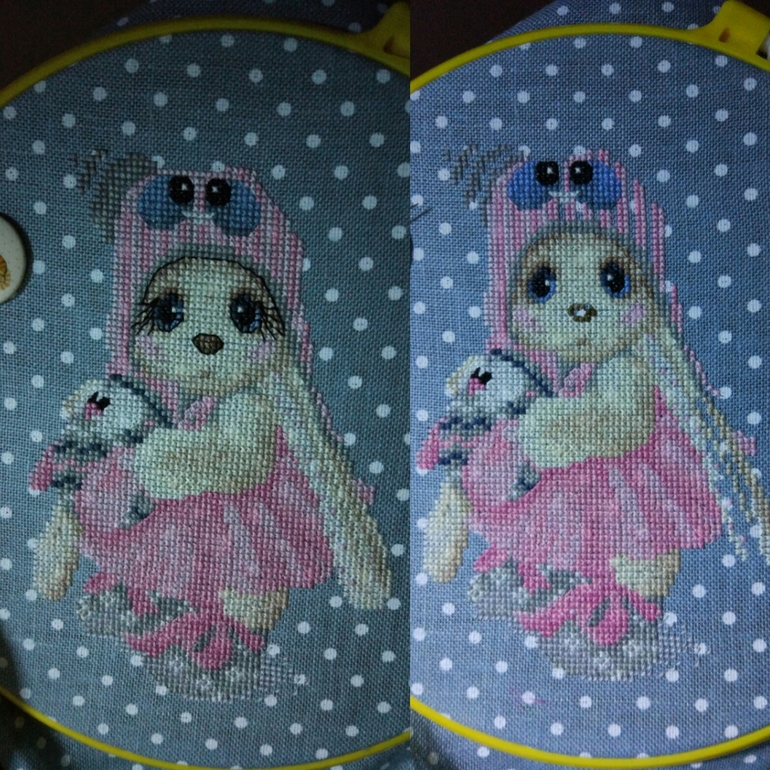 Найдите 10 отличий)))) Вышивала зеленым....Не очень хорошо заметно....слева идет светло-светло зеленый....)))))