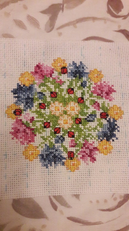 Всем приветик) у меня подрос круг)) пошла его верхняя половина в дело)) правда опять нитки кончились..причем те, что я заменила анкором..а его теперь у нас в городе вообще не купишь...а там с этим цветом еще и блендом много шить...короче..опять будет тормозится процесс...то-то за окном похолодало и минус на градуснике и снег сыпется с неба)))))
