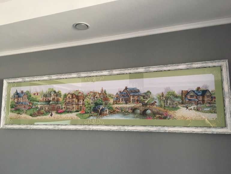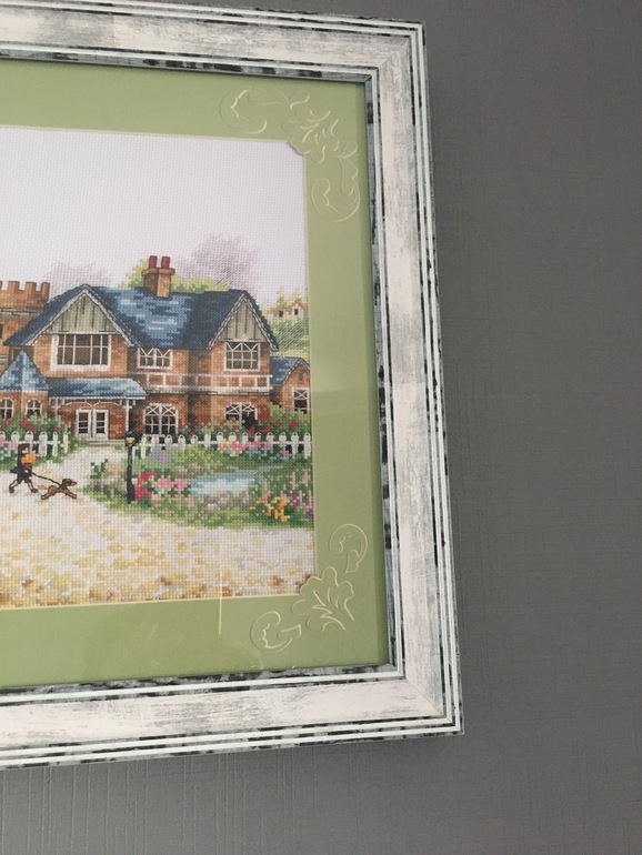 Это получилось по нежнее. Я сейчас смотрю на ту и эту работу эта мне нравиться больше. И хорошо, что придумали эти резные вставки. Не во всех багетках такое делают.