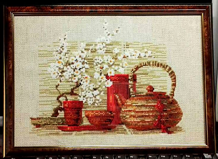 Вышивка крестомНу, кофе-то я давно уже закончила, а вот чай только что, оформила тоже, как говорится, с пылу - с жару.