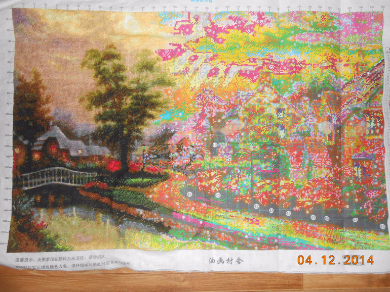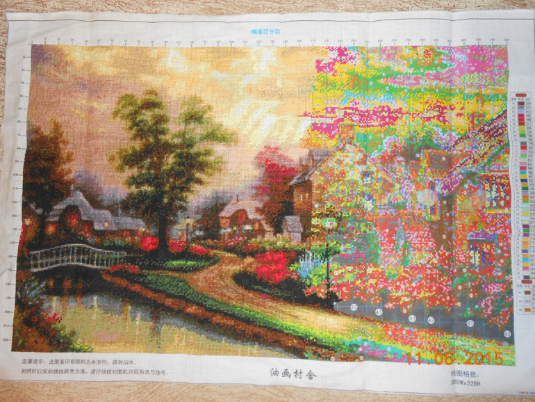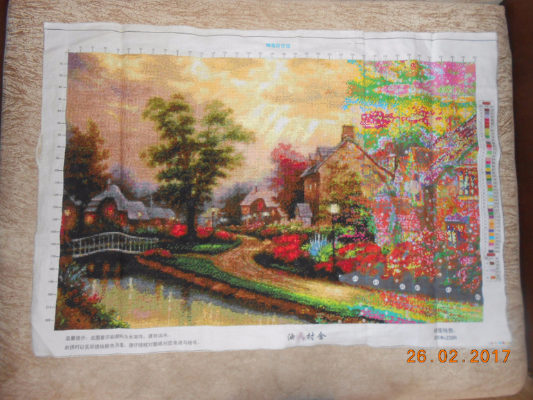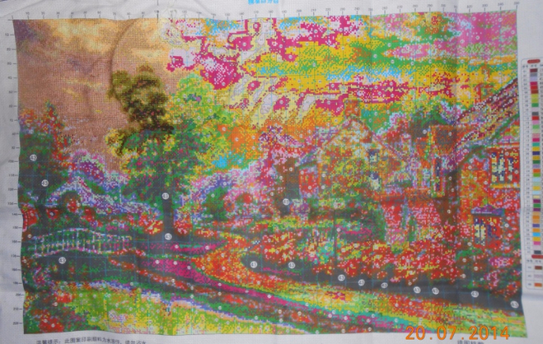 Тут начался перерыв на полтора года, срочно надо было вышить метрику к свадьбе сестры, потом роды, лялька. И вот наконец в феврале я достала вышивку, стараюсь почти каждый день выкраивать хоть немного времени и балдеююю (балдеть получается только когда доча спит, иначе она скачет на голове у меня, или утаскивает нитки-пяльцы и хохочет)