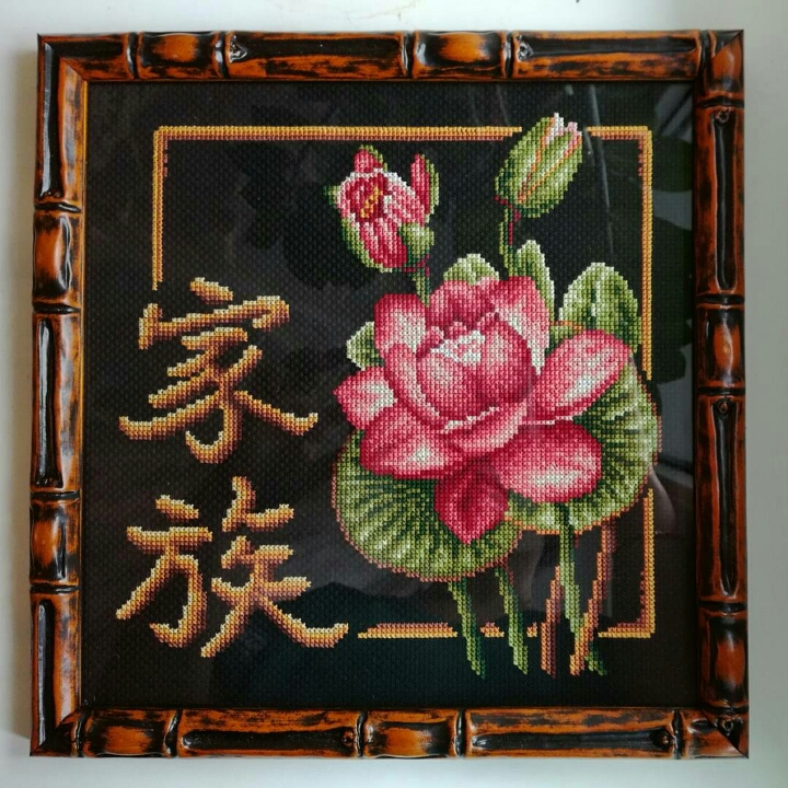 Начну с лотоса Панны Именно такое оформление я хотела для нее, цвет багета чуть светлее, чем на фото, и из-за черной канвы в стекле отразилось все, что только могло)))