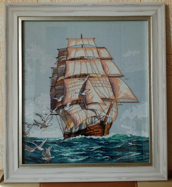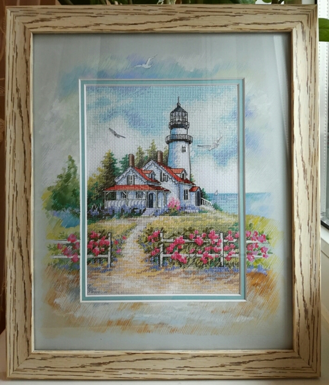 Живописный маяк. Его я сделала с дорисовкой, багет заказывала такой же, только белый, но поставщик почему-то прислал этот, но и он тоже смотрится не плохо