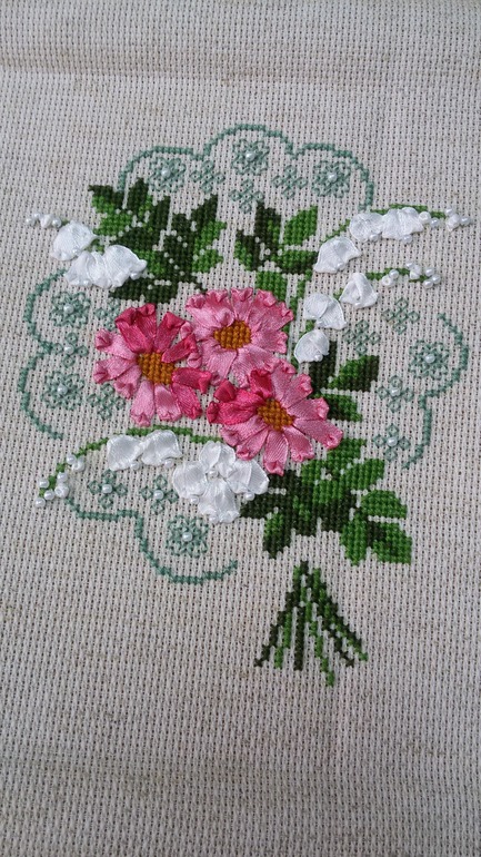 У нас тут полдня льет за окном, а я наконец-то закончила вторую работу из трех от Риолиса. Покажу вам уже 2 готовые (они небольшого размера). Буду вставлять их в круглые пяльца-рамку (диаметр 20) и потом уже перевяжу букеты ленточкой. Ещё остался один набор из этой серии. Там что-то типа свадебной метрики, но его хочу вышить просто как букет цветов.
