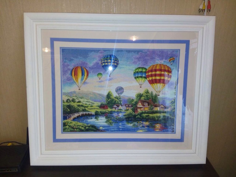 Вышивка крестомНабор "Парад шаров" мне подарили подруги на день рождение. Вышивала почти год. Верхнюю половину за месяц на одном дыхании. Настоящая цветотерапия. Интересные переходы неба, яркие краски шаров. А вот потом вышивала "набегами" по настроению. Под каждым шаром красной ручкой написала по желанию, жду исполнения)))