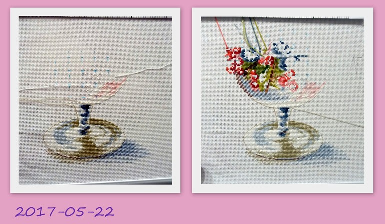 Хоть мои успехи и не особенно заметны, но без совместника вышивка вообще бы не продвигалась)) ..И мой последний маленький отчет: