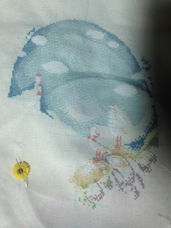 Всем привет. Я на этой неделе вышивала Шум моря. Схема оказалась с ошибками(( Дизайнер прислала исправленную версию, но и она с ошибками. Я уже не стала обращаться снова, расстроилась. Шум вышью, но вряд ли куплю что-то ещё у неё. Вот мой прогресс: