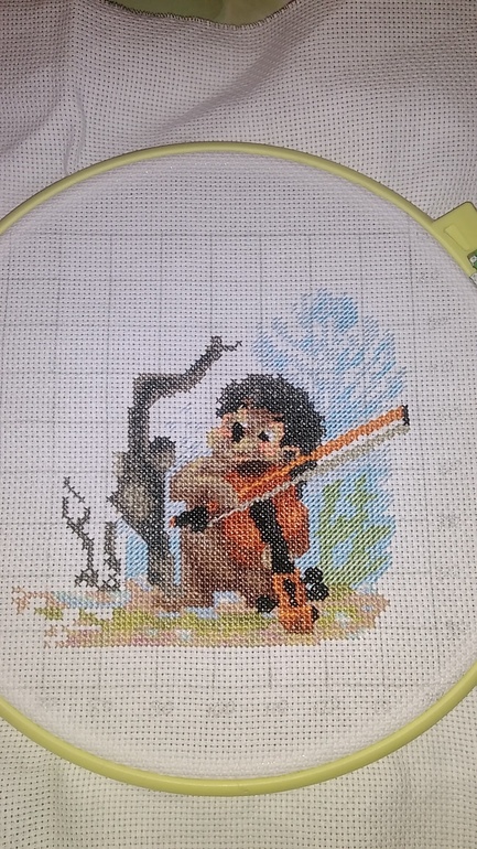 Всем привет! Более-менее вышила) получилось 1213 крестиков. Правда чувствую одно место на волосах зря темнее сделала у сестры( придется пороть...