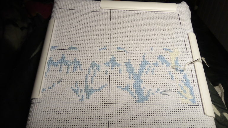 Я закончила почти все крестики, остались полукрестиком небо, бек и фр. узелки.