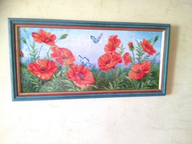 Вышивка крестомВсем привет! Вчера закончила вышивать Торжество маков от фирмы Сделай своими руками. Набор вышивается шерстяными ниточками, на 14 канве, но я поменяла на 18, и вышивала полукрестом) размер получился 18,5 на 42,5) вышивала легко и с удовольствием)