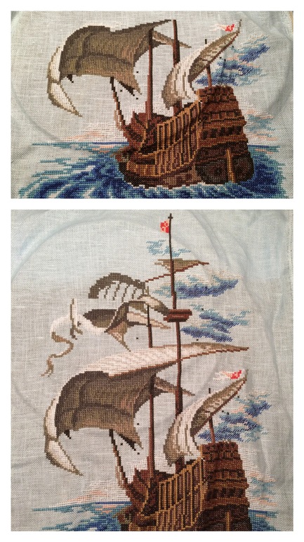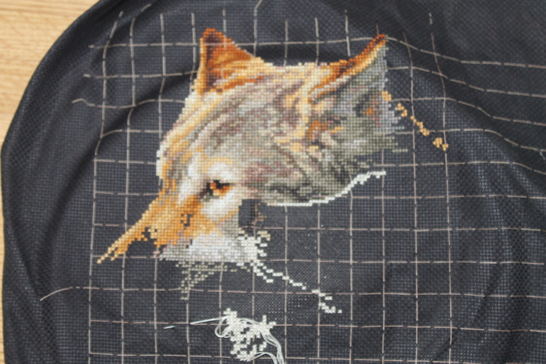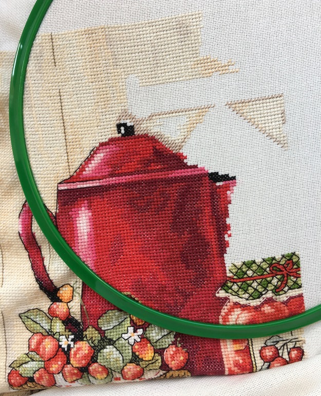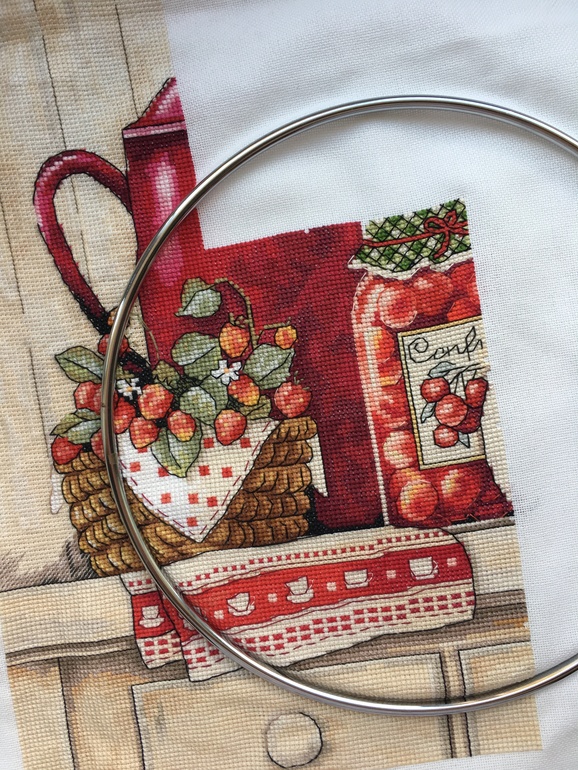 Она только кажется поменьше, а так она полный зашив 90*120 крестиков на 18 канве)) я её начала из-за компактности, что в дороге и на улице сидя на лавочке можно вышивать, да и в сумку легко помещается