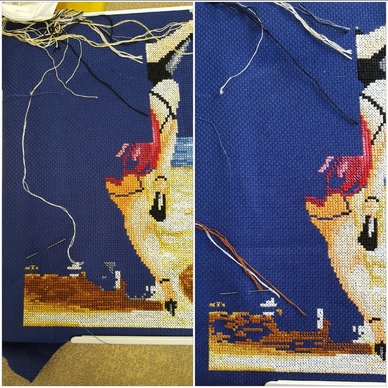 Всём привет! Мне особо похвастаться нечем, т.к проходим лечение, вышиваю чуток в дороге, но меня быстро укачивает, да вечером пока сын гуляет на площадке, я сижу рядом на лавочке и наслаждаюсь вышивкой... Благо лето на Урал хоть ненадолго но вернулось=) и как итог кота почти и не трогала, т.к его вышиваю только дома из-за размера, а домой я прихожу, делаю все домашние дела и вырубаюсь