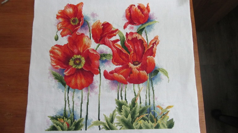 Вышивка крестомДавно я на них заглядывалась... Только крестики, никаких блендов, бэка, но такие плавные переходы, что я порой забывала каким цветом вышиваю. Пришлось завести 39 иголок на каждый цвет, так и ориентировалась, где нет иголки там и брать доп. ниточку))) По схеме справа должен быть еще маленький мак, но четное количество смутило мужа, все-таки подарок его маме и решено было его не делать. Отдельное спасибо девочкам из забега "Последний месяц лета" и организатору этого забега, из последних сил, но я доделала! А то под конец хотелось бросить, но жалко было на финишной прямой отправлять в долгострой)))) Как думаете, свекрови понравится подарок?