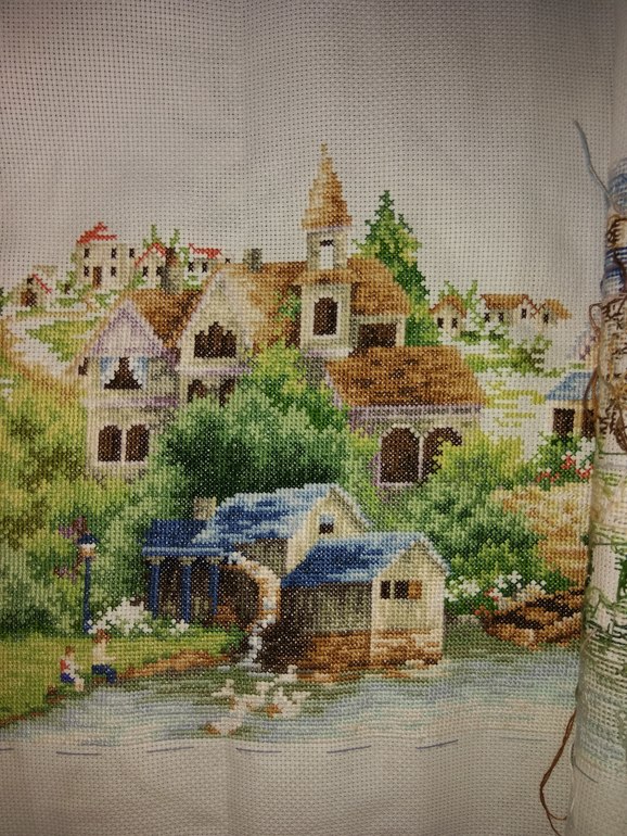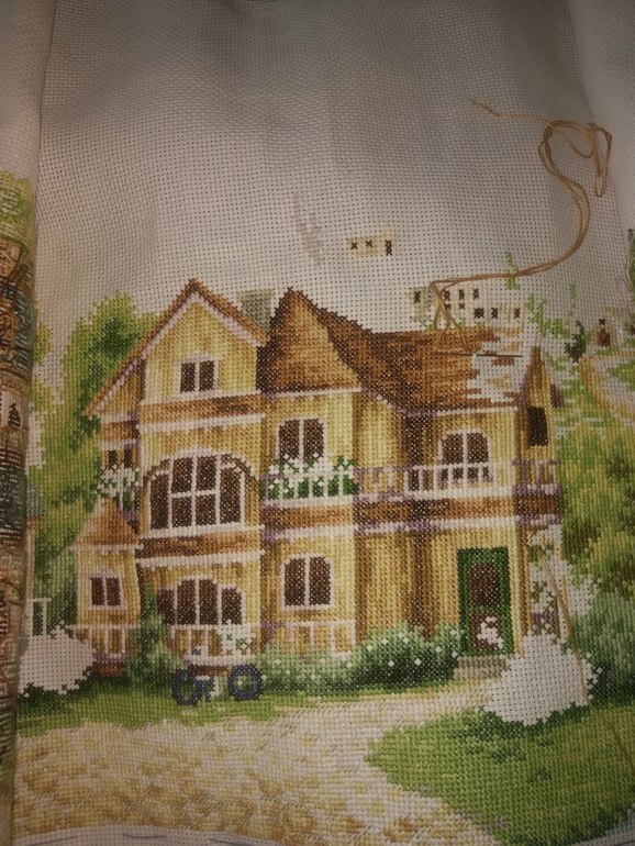Давно не писала подробности вишивания в дневнике единственое скажу вишиваю по цветам в 5-6етапов вот мои домики 5