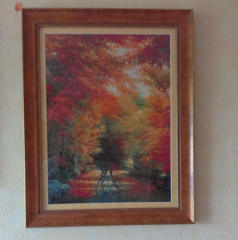 Вышивала его практически год, вышивка сложная т.к. много одиночных крестиков на 18 канве. Но результат мне очень нравится.