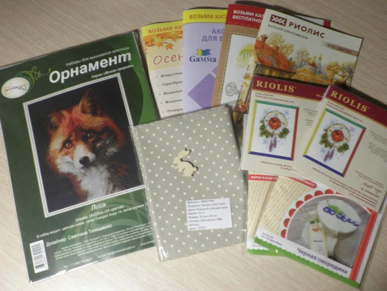 Ну а это вышивальные вкусности, которые я привезла с выставки)) Вокруг этой лисы я 2 года ходила кругами))) И когда, наконец таки, достала кошелек и начала искать этот набор среди остальных на стенде "Орнамента", увидела протянутый мне Машей пакет)))) С полюбившимся мне наборчиком))) И когда успела?)))