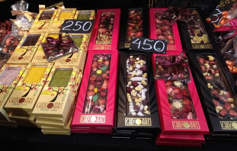 Натуральный шоколад с необычными добавками, типа зелного чая, мы с Машей продегустировали под стаканчик глинтвейна))))