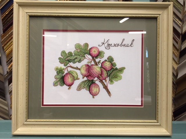 Вышивка крестомОформились замечательные вышивки 1. Золотые ручки "В засаде", 2. МП-студия "Дары природы" Шиповник и Крыжовник. Оформление бюджетное, багет пластиковый, двойное паспарту, стекло обычное.