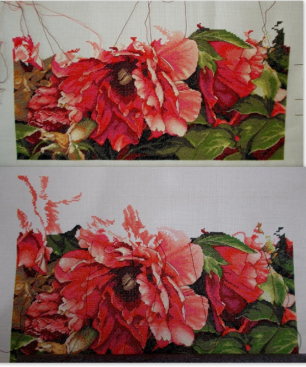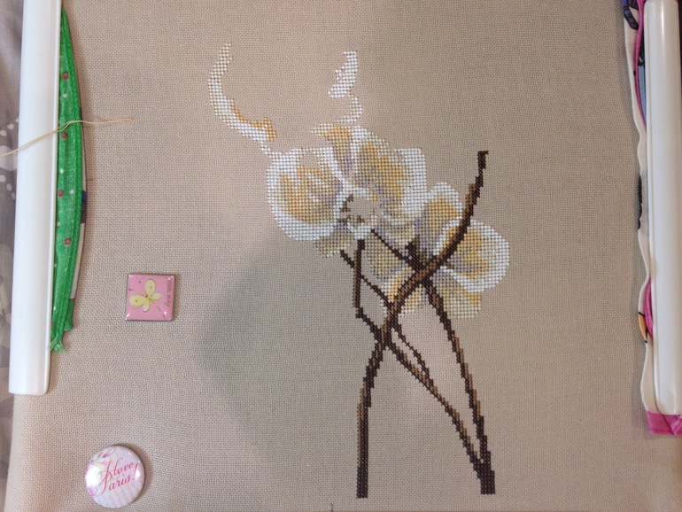 Показываю свой пион. Это с начала ВД. Вышивала по чуть-чуть. Теперь видно разницу - можно и похвастать. По остальным процессам пока слишком мало((