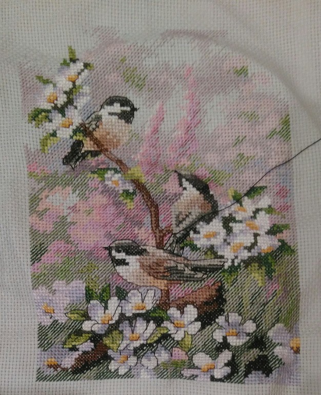А я заболела. Не сильно, так, простудилась. Но вот делать что-то совсем не хочется(( Еще и голова болит. Птичек моих я почти дошила, чуть-чуть бэка осталось: