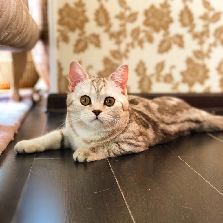 Да, шотландская вислоухая с родословной. Очень ровные полоски, идеально симметричные) Выдам замуж ее за кота, у которого ушки лежат, и обещали котят со стоячими и висячими ушами) Скоро начнем по выставкам ходить, когда год исполнится.