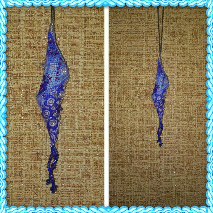 Елочная игрушка-сосулька вышивалась на китайской равномерке. Красила сама канцелярскими чернилами.