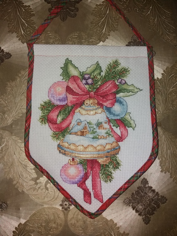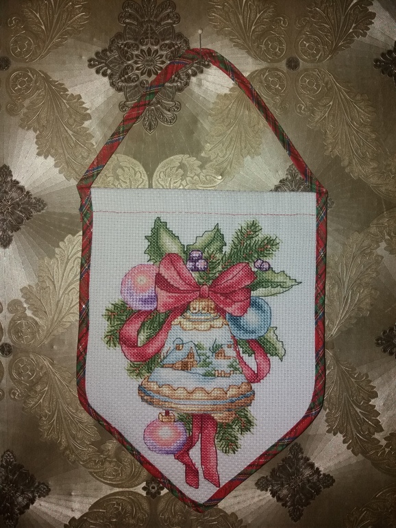А это колокольчик уже в оформленном состоянии. Ещё на стадии вышивки пришло в голову оформить в вымпел.