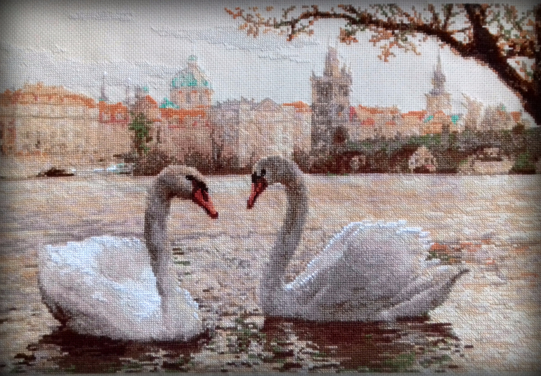 "Лебеди. Прага" от Риолис, очень они мне нравятся, на отшив ушло 3 месяца. Из оригинала уплыл третий лебедь, осталась пара).