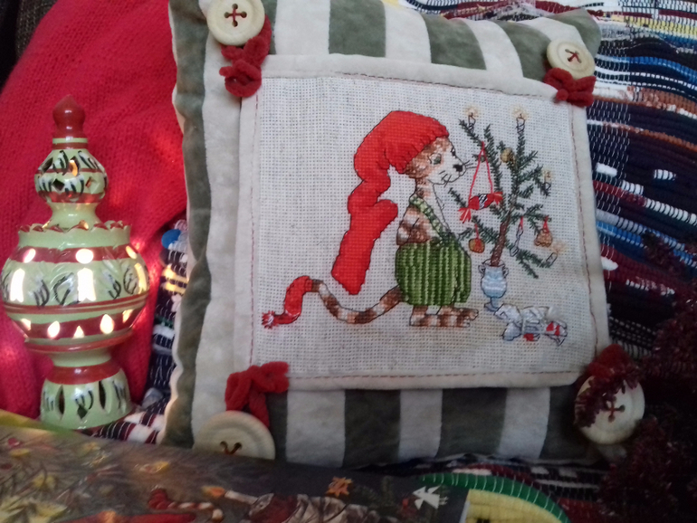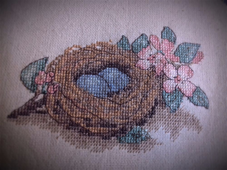После гнёздышка вышивала "Фламандское лето" от Риолис, отшита 1/3 - пока ушел в долгострой, немного устав от него, да и новогодний совместник с головой увлек в волшебство новогоднего творчества) Вот что из этого вышло: