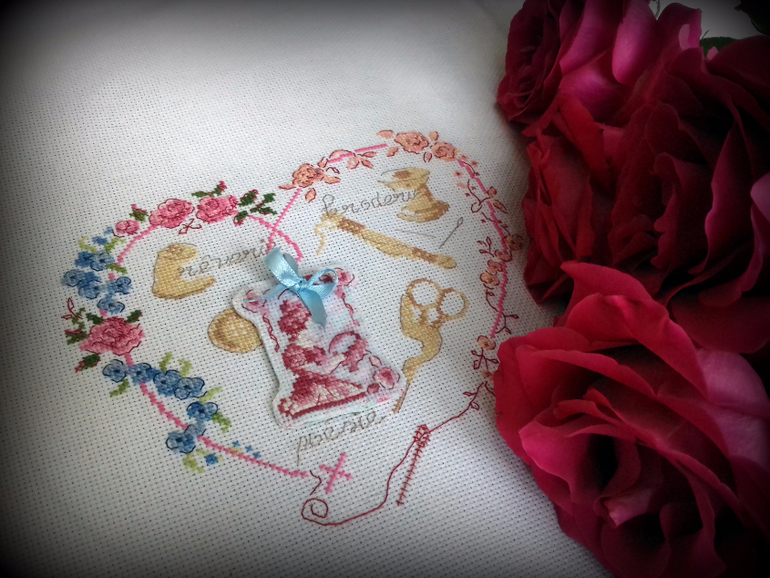Сердечко стало небольшим отдыхом от лебедей, но пока его вышивала, мечтала скорее дошить, чтобы вернуться к ним)