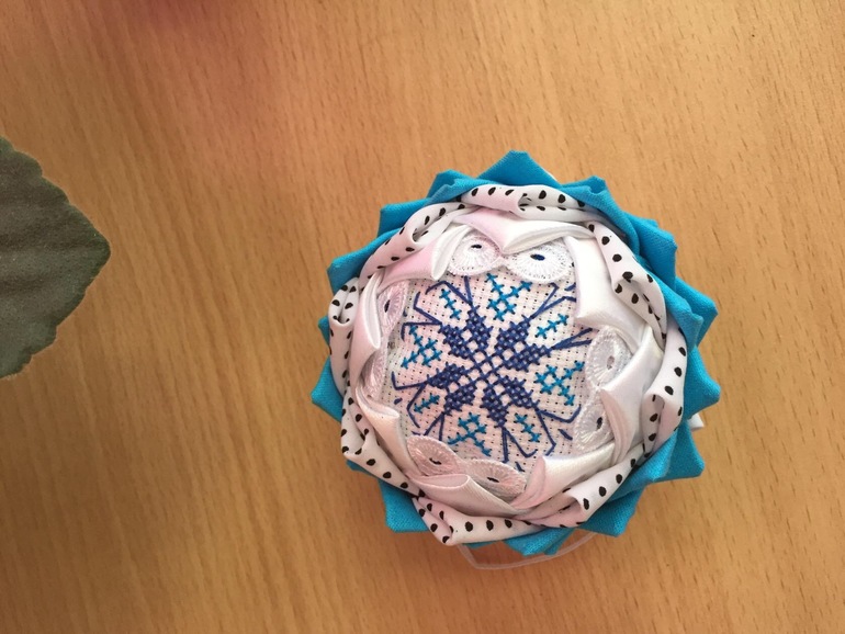 Шарик новогодний в технике артишок,вышивка его оживила и нарядила