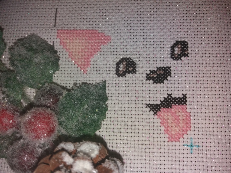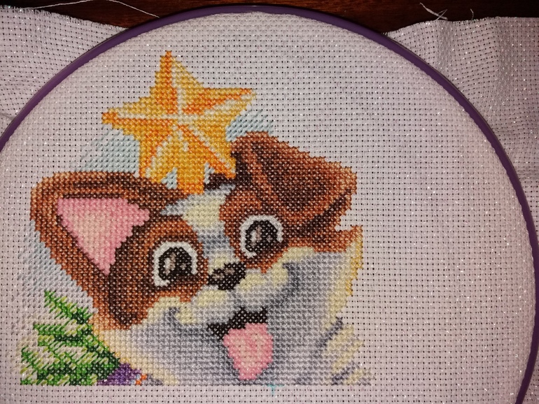 В промежутках между этапами пёсика вышила первый этап шовчиковой авантюры Метель. 2 раза порола. Но пока результатом довольна.