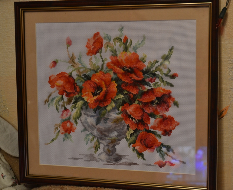 Итак. МАКИ. Просто маки! Девушка сделала подарок своей маме на ДР с моей помощью))) Её мама фанат Маков.А мне понравилось их вышивать!