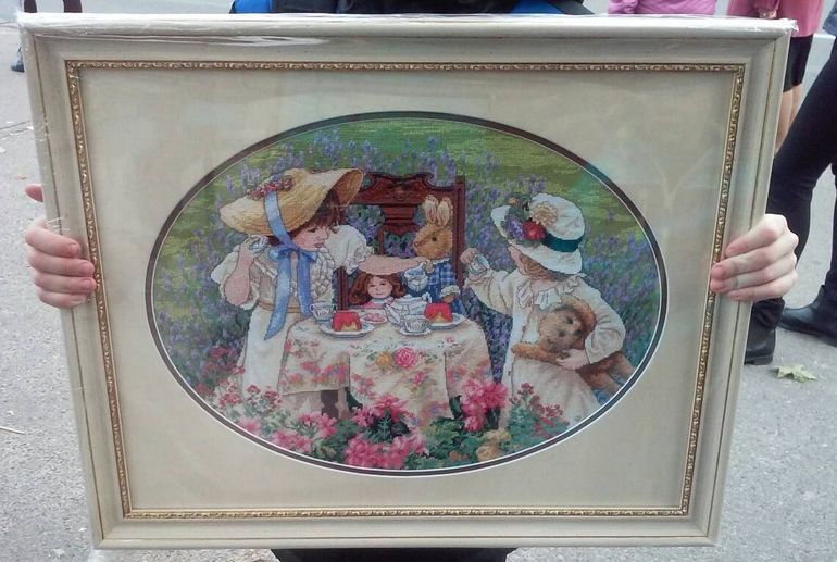 Понесла в багетку, работа все перекошенная(( Но мастер попался опытный, с любовью к своему делу и все мне вытянул и подправил!
