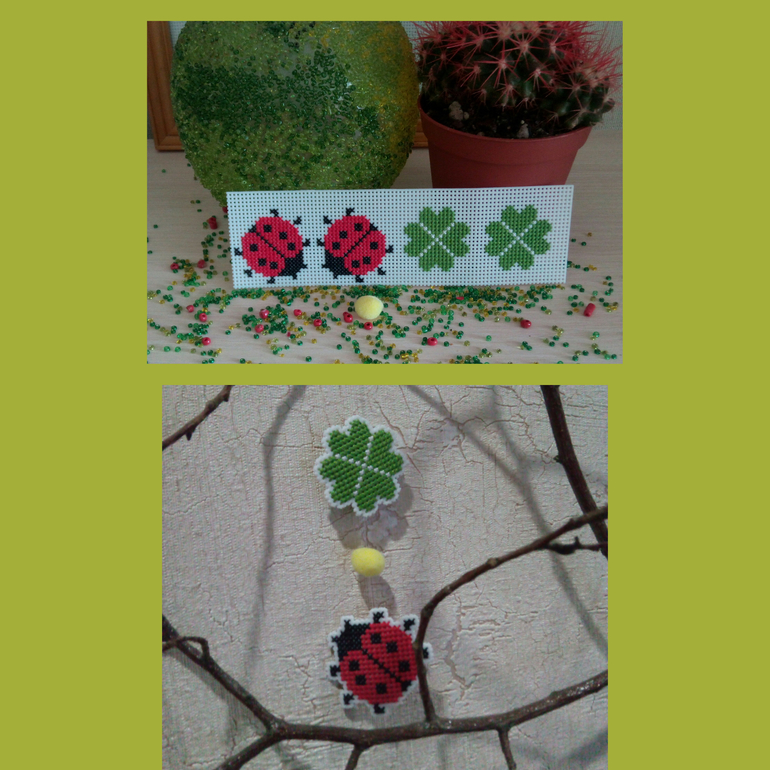 И ещё маленькое напоминание о весне. У меня в прихожей есть веточка, зимой там снежинки и новогодние вышивашки, а летом она голая, решила и её на лето украсить.