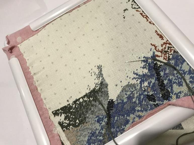 Наверное надо станок на пяльца менять, а то над станком только внаклонку.