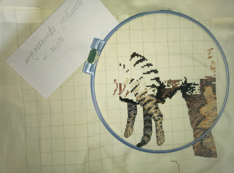 Всем привет! Закрутилась с разбором шкафов и только поняла сколько времени=( в общем продолжила вышивать ленивого кота но там с учётом канвы всего 107 крестиков.