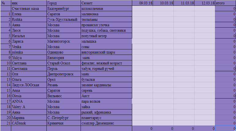 Можно. Сегодня только первый отчёт. Если не успеешь до 20:00 по мск на ковырять, то выходной поставлю на сегодня. Кодовое слово для тебя весна! Скидывай сюда что планируешь вышивать