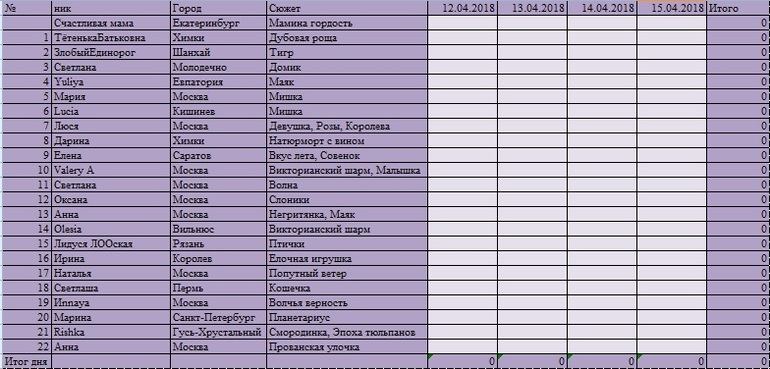 Игра "Вышивальный забег"Такого крутого забега я точно не предполагала... Пишу с родильного отделения=) так что без нашей красивой таблицы. Отчёты пишите сюда. Сейчас определимся как и кто будет вести и я скорректирую пост и напишу до какого времени жду отчёты =) всех люблю и прошу понять и простить