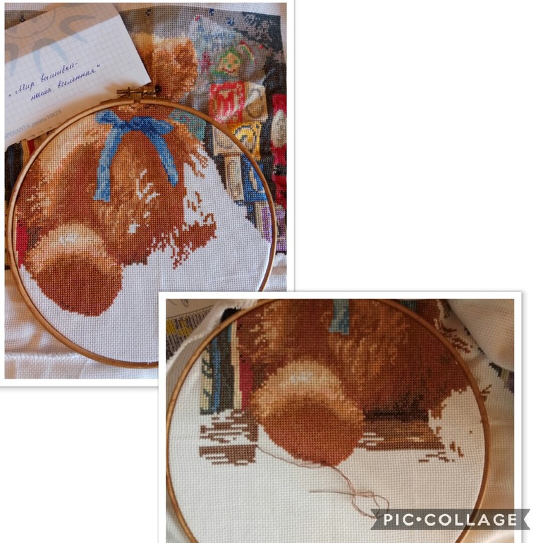 Хотела дошить лапу, но обнаружила, что в органайзере перепутаны цвета, пару пасм коричневого цвета были развешаны к похожему оттенку(( ...стала разбираться, и похоже что я вышила пол медведя не тем оттенком. И также с одним светлым цветом, обнаружила когда шила корешок книги снизу((. Полезла читать отзывы про производителя, думаю то ли я дура, то ли лыжи не едут, оказывается лыжи(( и это у них в наборах сплошь и рядом((. Пока решила комод вышить, а там буду думать чего делать. С расстройства целый день не вышивала(