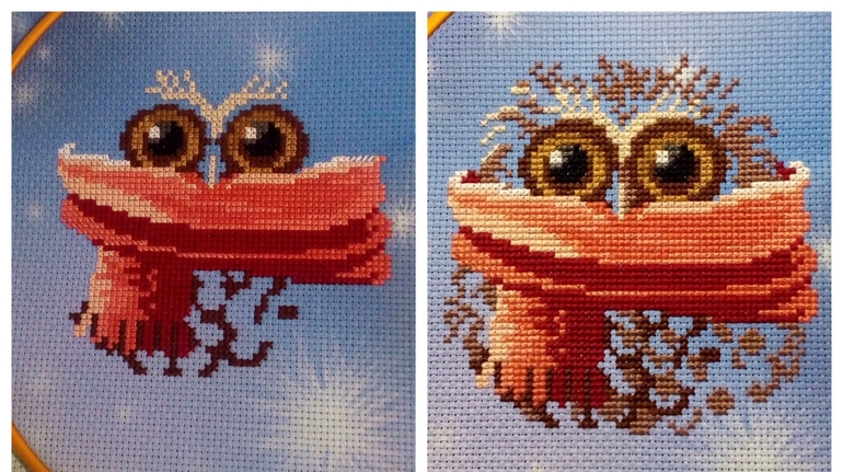 у меня эти совята все 4 отшиты и висят в рамках по лестнице: поднимаешься с зимы и ближе ко второму этажу уже осенний висит.