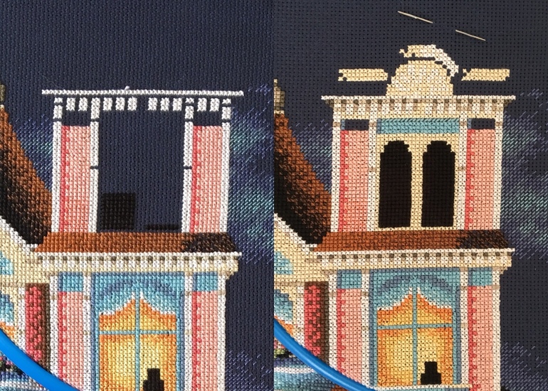 Стройка хорошо идет! Очень странно, что нитки кончились (если у вас новый набор, конечно). Уних обычно почти половина остается